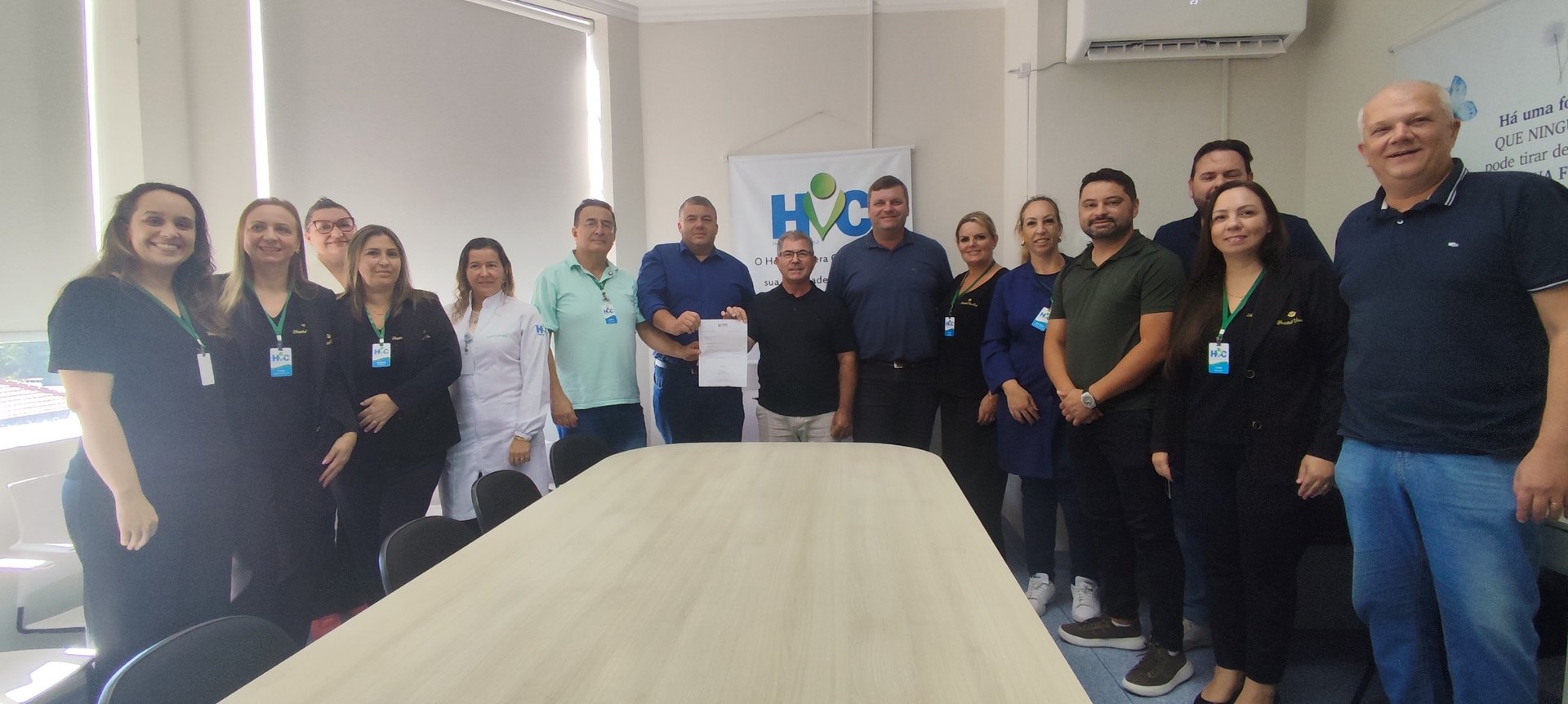 diretor-presidente do Hospital Vera Cruz, Neuri Gusson, além de funcionários da