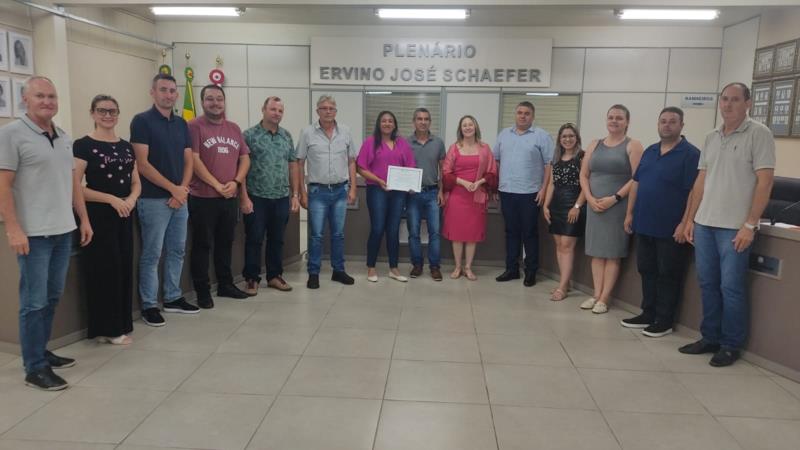 No final da tarde desta segunda- feira, 11 de dezembro, o Poder Legislativo de Vera Cruz homenageou duas pessoas em sessão ordinária. Foi consignado em ata e prestado homenagens à Sr.ª Ivonete Adriana de Moura e ao Sr. Gustavo Deufel.