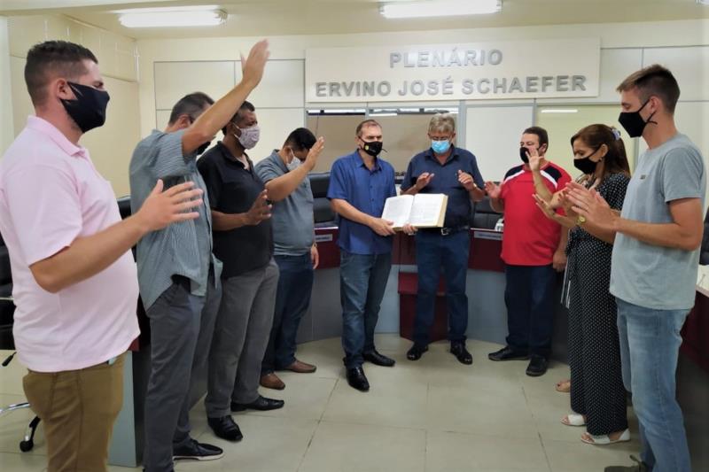 Na ocasião estiveram presente pastores de igrejas do Município, o Presidente da Câmara Valceni Goularte da Silva (MDB), os vereadores Gelson Fernandes de Moura (PTB), David Silas Petry (PP) e a vereadora Vaneila Liara Helfer (PSB) que particaparam da oração pelo município e benção dos trabalhos dos vereadores e equipe da Câmara Municipal.