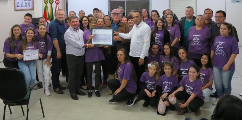 Dalvo Pedro Wink (MDB) e Eduardo Wanilson Martins Viana (PTB), com o apoio dos demais vereadores, concederam uma Moção Congratulatória ao Grupo Amigas do Bem, de Lª Henrique D'Ávila, que à cerca de dois anos, realizam de forma voluntária o trabalho de resgate de pacientes dependentes de medicamentos antidepressivos e de ansiedade.