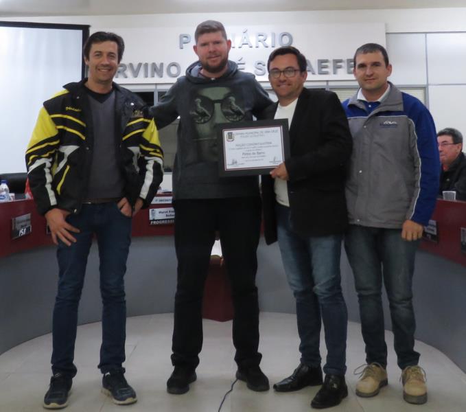 O vereador Marcelo Rodrigues de Carvalho (PTB), com o apoio dos demais vereadores, concedeu Moção Congratulatória ao grupo de trilheiros Pintos do Barro, em alusão aos dez anos de fundação.