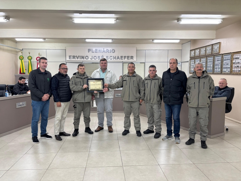 A Câmara Municipal de Vera Cruz concedeu, por meio da Moção Congratulatória nº 5/2025, uma homenagem à Patrulha Escolar, reconhecendo a relevância e a excelência do trabalho realizado pelos policiais militares que atuam diretamente nas escolas do município. A iniciativa partiu do vereador Eduardo Viana e foi aprovada por unanimidade pelos demais parlamentares, na sessão ordinária do dia 28 de julho, contando com a presença do Tenente Carlos Moisés Savian do Passos, bem como os demais membros da Patrulha Escolar, os policiais Gentil dos Santos Assunção, Jorge Henn, Jorge Severino Alves da Silveira, Paulo Roberto Tavares e Pedro Elci Bicca. Além desses, fes-se presente o Prefeito Gilson Becker e equipes diretivas de escolas do município.A Patrulha Escolar tem desempenhado um papel fundamental na promoção da segurança e na aproximação entre a Brigada Militar e a comunidade escolar. O trabalho envolve ações de prevenção, orientação e presença efetiva nas instituições de ensino, destacando o comprometimento dos policiais militares que atuam junto às escolas, promovendo segurança e diálogo, resultando, por fim, na diminuição de ocorrências como brigas, evasão escolar e exposição de jovens a situações de risco, como o envolvimento com drogas, além do cuidado com a circulação dos estudantes no trâsito nos períodos de entrada e saída das escolas. O projeto teve início a partir de articulações em 2018, envolvendo o Poder Legislativo e a Brigada Militar. A formalização da solicitação foi feita em outubro de 2019, quando uma moção de apelo foi entregue ao Comandante Tenente Carlos Moisés Savian dos Passos, que encaminhou a demanda ao Governo do Estado. Com empenho e dedicação, a Patrulha foi oficialmente implantada, consolidando-se como uma ação efetiva de segurança pública no ambiente escolar.Durante a cerimônia de homenagem, o vereador Eduardo Viana destacou que, antes da atuação da Patrulha Escolar, era comum o registro de conflitos ao final dos turnos nas escolas. Ele ressaltou que a presença dos policiais tem contribuído para transformar essa realidade, oferecendo proteção, orientação e fortalecendo vínculos com os estudantes. ?A Patrulha Escolar tem sido um braço importante da Brigada Militar nas escolas de Vera Cruz?, afirmou o parlamentar, agradecendo o empenho de todos os envolvidos. Também destacou os policiais que fazem parte da história da Patrulha Escolar, reconhecendo publicamente sua contribuição: Gentil dos Santos Assunção, Jorge Henn, Jorge Severino Alves da Silveira, Paulo Roberto Tavares e Pedro Elci Bicca. Esses profissionais representam não apenas a segurança, mas também o cuidado e a atenção com as novas gerações.O Prefeito Gilson Becker, ao fazer uso da palavra, salientou a importância dessa modalidade de policiamento nas escolas para a segurança da nossa cidade um apoio que é recebido com gratidão, pois é feito com muito trabalho e empenho, dedicando-se à prevenção de riscos e ao cuidado dos alunos vera-cruzenses. Em seguida, o Tenente Savian evidenciou o quanto a Patrulha Escolar é um exemplo a ser seguido, não só pelo que ela promove, mas por quem o faz: profissionais que dedicaram mais de 30 anos à corporação da Brigada Militar e, hoje, levam tantos ensinamentos aos jovens do Município. Ele também aproveitou o momento para agradecer o reconhecimento e as homenagens prestadas e para reforçar o compromisso da Brigada Militar com a segurança em Vera Cruz."Só quem veste uma farda da Brigada Militar sabe a o quão pesada essa farda é e o quanto a gente se doa, para essa profissão e para a comunidade e a gente, às vezes, deixa a nossa família para trás para poder preservar a família dos outros." - Tenente Savian.A moção reforça o compromisso da Câmara Municipal com o reconhecimento de iniciativas que impactam positivamente a sociedade. Ao homenagear a Patrulha Escolar, o Legislativo valoriza uma política de segurança pública voltada à prevenção, à educação e à construção de um ambiente escolar mais seguro e acolhedor.