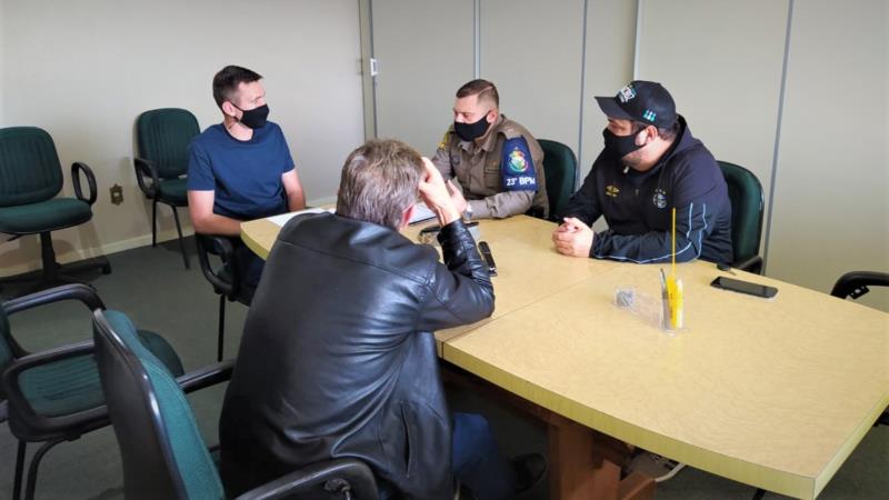 Na ocasião, estiveram presentes, além do proponente do Pedido, o Presidente do Poder Legislativo, Valceni Goularte (MDB) e o Vereador Marcelo Henrique de Carvalho (PTB). Na oportunidade, aproveitaram para explanar sobre a possibilidade da criação de uma Patrulha Maria da Penha e sobre os trâmites no que tange a nova viatura adquirida com recursos oriundos da Câmara Municipal de Vera Cruz. Sobre este último assunto, cabe salientar que o veículo está sendo adesivado e recebendo os aparelhos de comunicação para que esteja em condições de atender o efetivo.